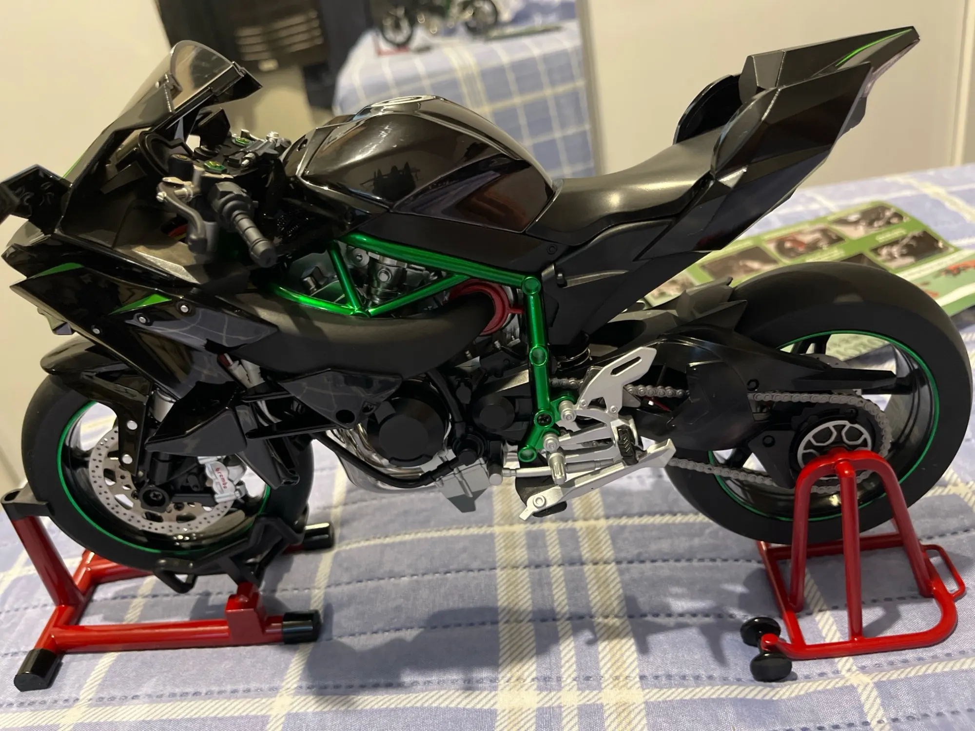 Imagine the expressions of awe as friends witness your Supreme Ninja H2R roaring to life, dashboard illuminated, with realistic smoke billowing from exhaust pipes. This isn't just another display model—it's an interactive experience capturing the essence of superbike engineering and performance.
